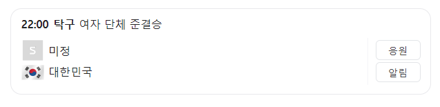 탁구 여자 단체전 4강 경기는 한국시간으로 8월 8일 목요일 22:00에 열릴예정이다!