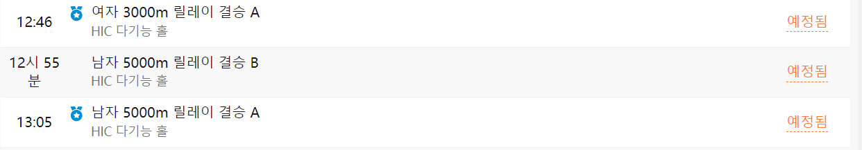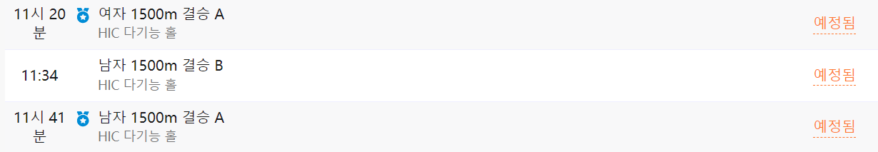 그럼 하얼빈 동계 아시안게임 쇼트트랙 결승전 일정을 알아보자!